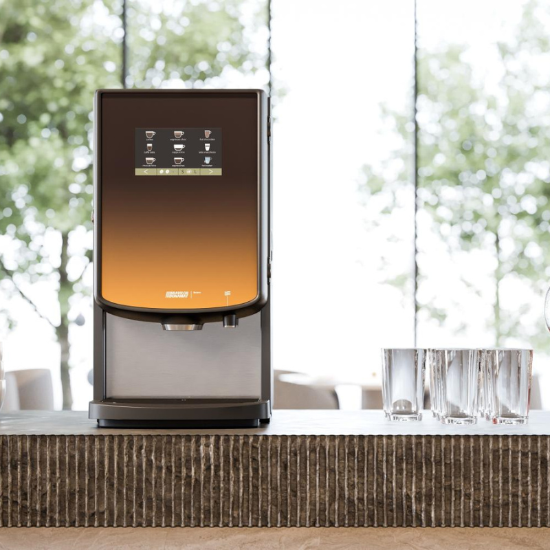 The Bolero 43 offers a wide range of beverages, up to 36 in total. The touchscreen offers a maximum of four screens offering a maximum of nine beverages per screen. You can, for example, combine instant coffee, topping (milk powder) and cocoa. With 4 canisters for max. 36 hot beverages including hot water.