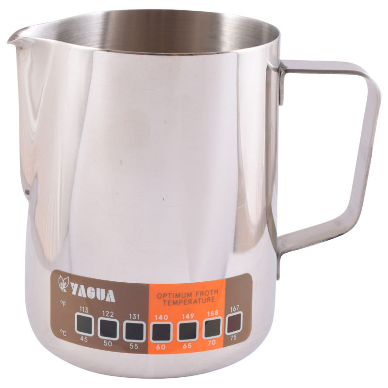 Dual dial label thermometer which fixes directly onto your frothing jug. Single colour liquid crystal indicators turn red instantly once temperature is reached. Features optimum froth zone indicator with extra crystal to indicate when the milk is too hot. Long lasting.